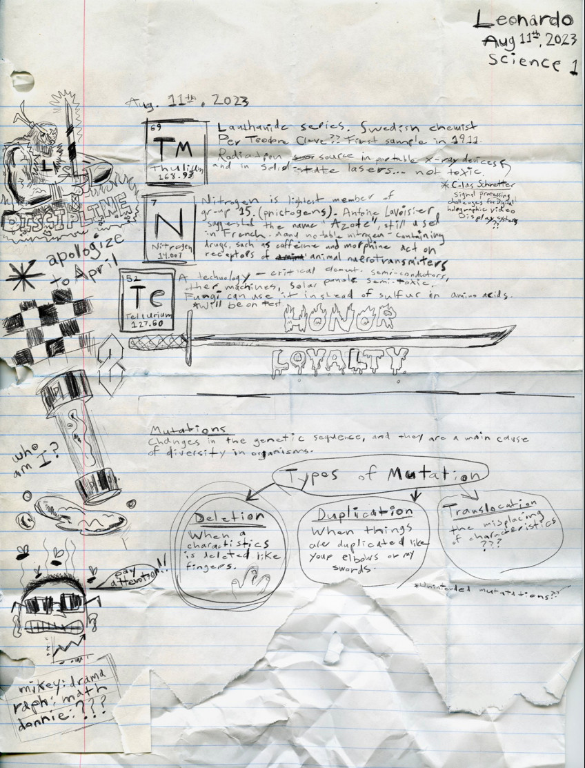 Сет Роген, продюсер нового ремейка «Черепашек-ниндзя», сообщил, что релиз проекта запланирован на 11 августа 2023 года. Так же он опубликовал изображение с записями, указав, что эта рукопись - работа черепашки Леонардо. Очевидно, что данная картинка должна намекнуть на сюжет. И судя по всему, он затронет природу мутации, благодаря которой появились мутанты-черепахи.